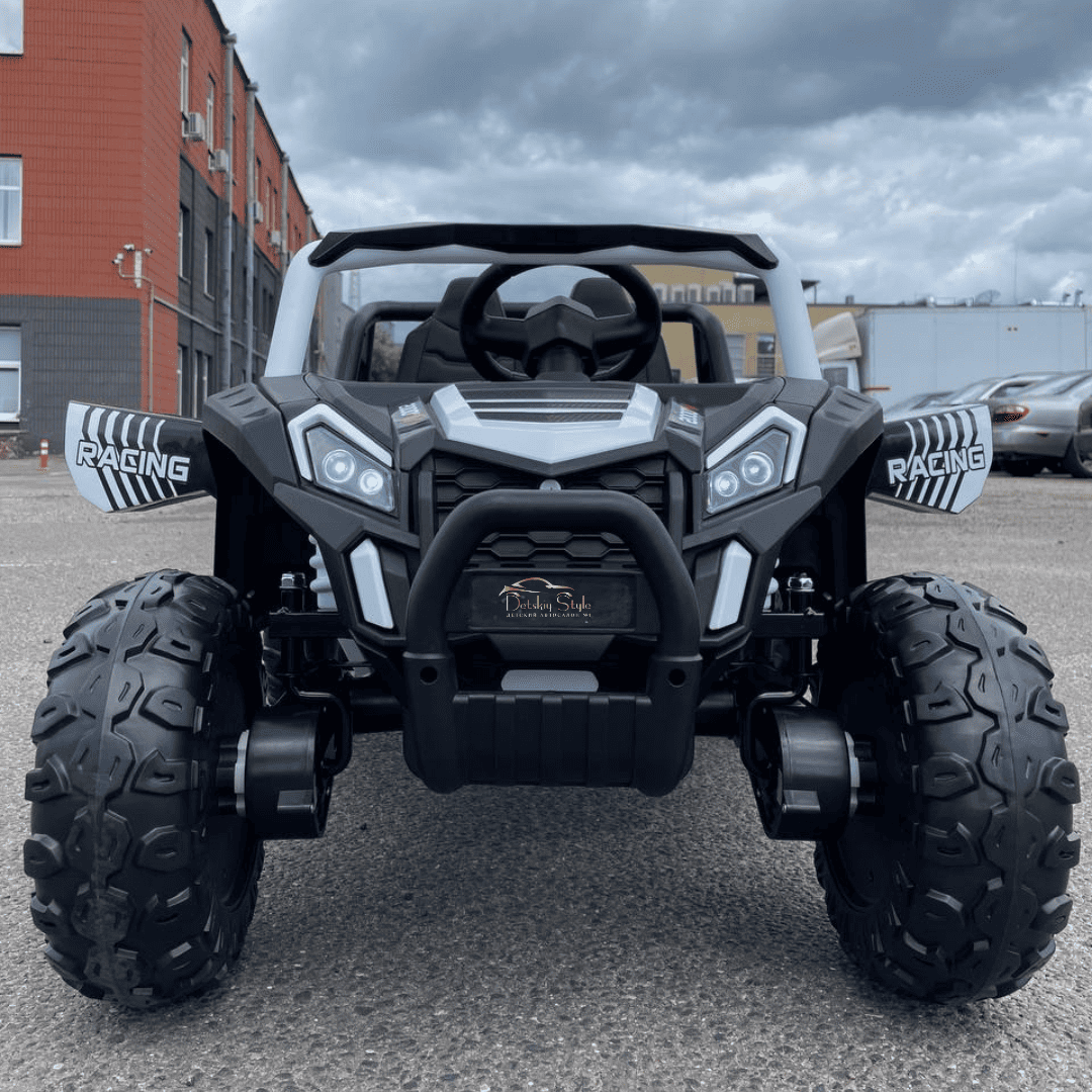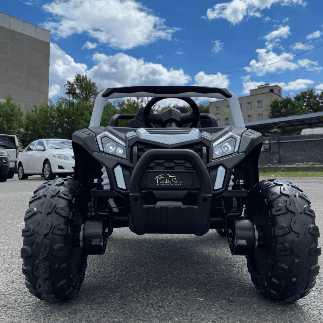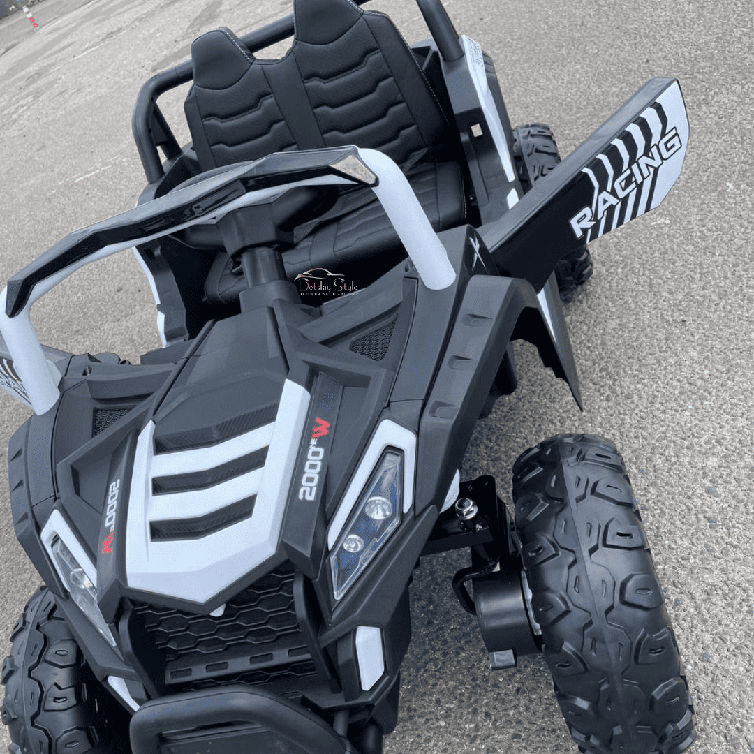Пульт дистанционного управления BlueTooth 2.4G программируется индивидуально на ваш электромобиль. Помимо стандартных кнопок управления движением, на пульте имеются кнопки экстренной остановки и выбора скоростного режима. Дальность пульта увеличена до 50 метров.