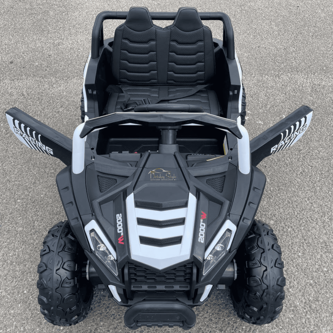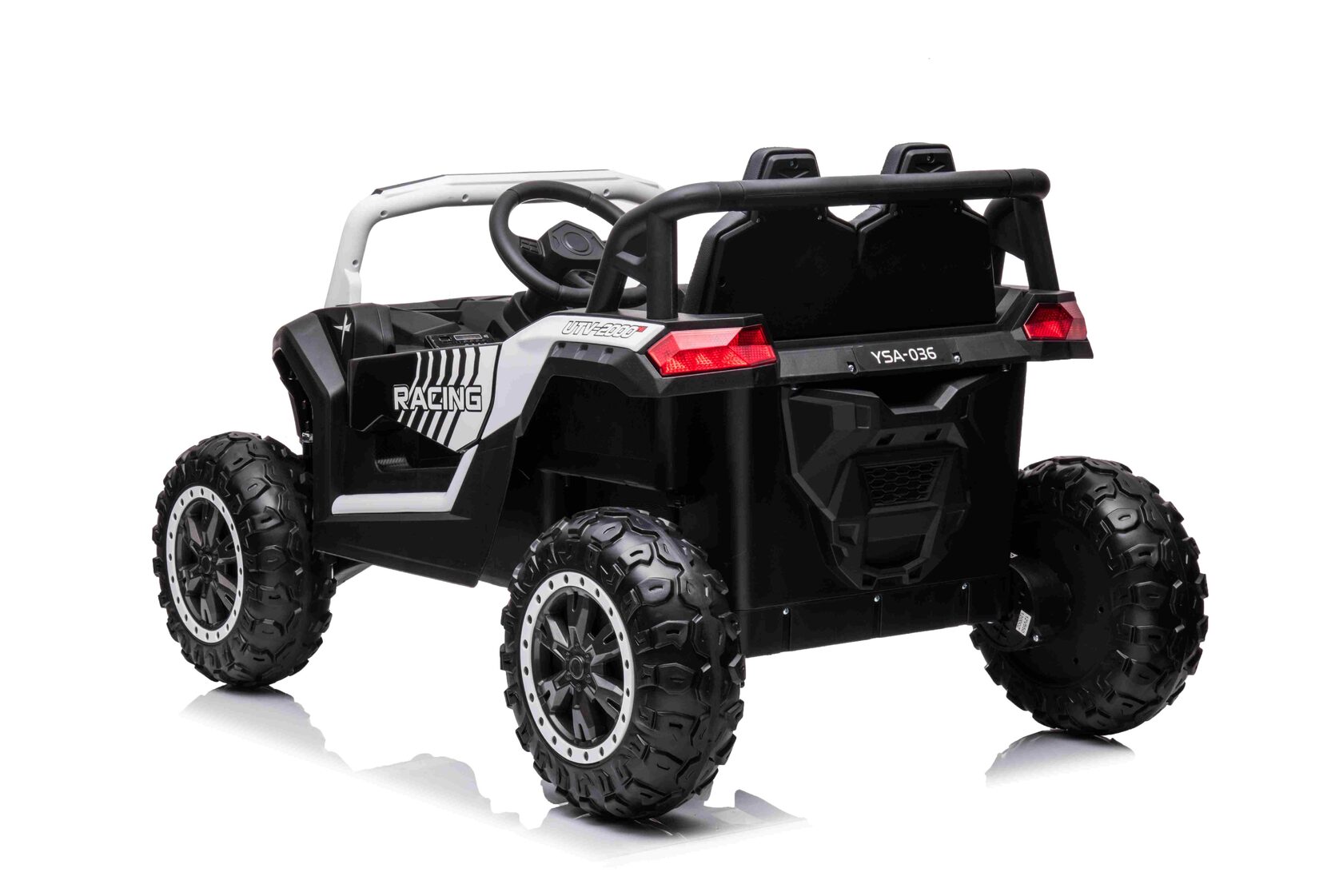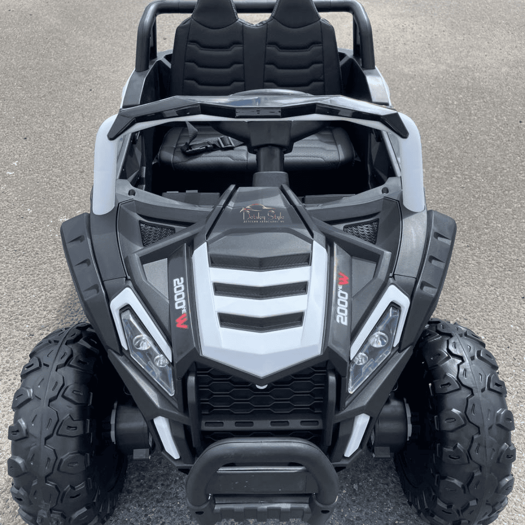 Пульт дистанционного управления BlueTooth 2.4G программируется индивидуально на ваш электромобиль. Помимо стандартных кнопок управления движением, на пульте имеются кнопки экстренной остановки и выбора скоростного режима. Дальность пульта увеличена до 50 метров.