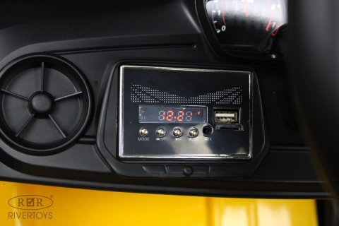 Настоящая цифровая аудио-система с разъёмами USB, SD, AUX — вы сможете воспроизводить любимую музыку вашего ребенка прямо в салоне электромобиля.